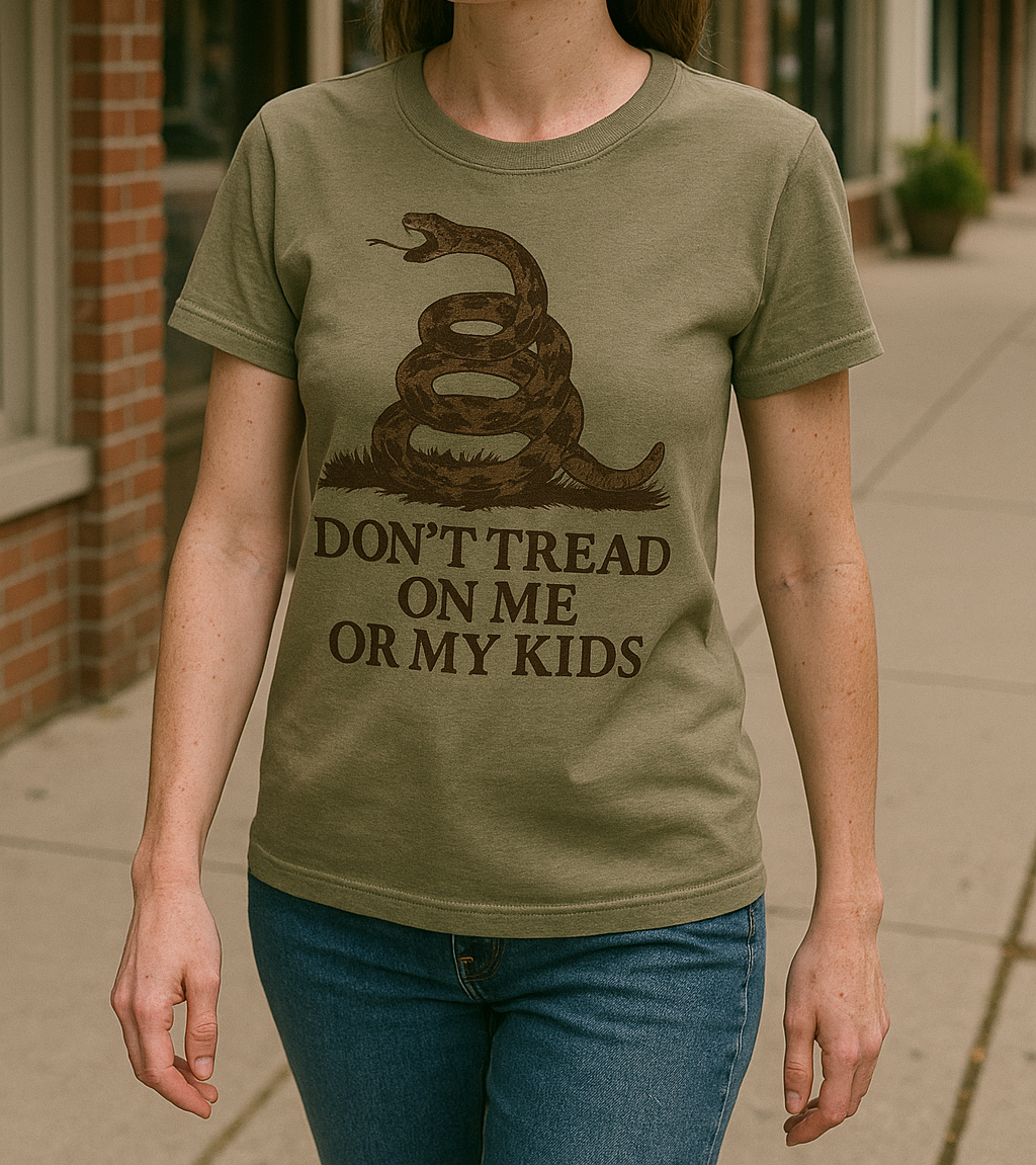 - 🐍 Bold Rattlesnake Graphic – Inspired by the historic Gadsden flag, reimagined for modern parents